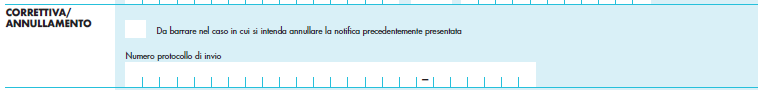 È possibile, inoltre, annullare, entro i termini di presentazione, gli effetti di una notifica già trasmessa, utilizzando questo stesso modello, nel quale va barrata la casella “Annullamento”. In tal caso, il quadro A non va compilato.