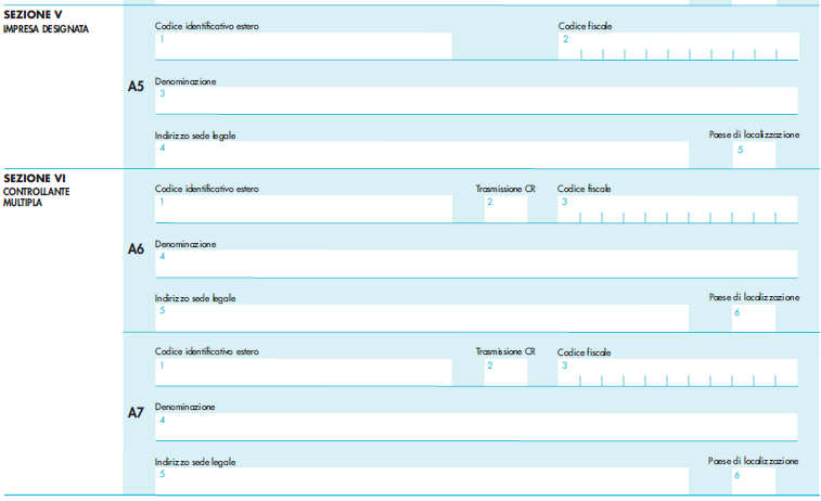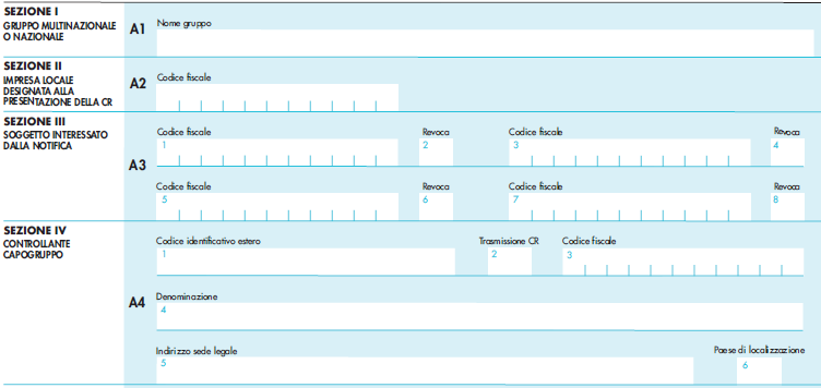 - la controllante capogruppo (se la Cr del soggetto o dei soggetti interessati è trasmessa all’Amministrazione fiscale italiana dal Paese della controllante capogruppo, è necessario barrare la casella “Trasmissione CR”).