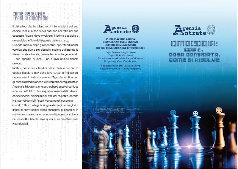 Il codice fiscale è lo strumento che consente di riconoscere in modo univoco ogni cittadino nei rapporti con la Pubblica amministrazione e con i privati. In casi rari, per coincidenza di dati anagrafici, può capitare che due cittadini risultino avere lo stesso codice fiscale base. Questa situazione si chiama “omocodia” e comporta l’impossibilità per la Pubblica amministrazione, ma anche per enti privati, di identificare univocamente il soggetto con cui stanno avendo rapporti, con il rischio concreto di generare confusione su atti e documenti. All’omocodia, cos’è e come si risolve, è dedicata una nuova brochure dell’Agenzia delle entrate, online da oggi nella sezione “l’Agenzia informa” del sito istituzionale e su questa rivista. Un opuscolo breve pensato per chiarire in poche parole cosa accade quando due o più persone generano lo stesso codice fiscale e come viene garantita l’univocità dell’identificazione.